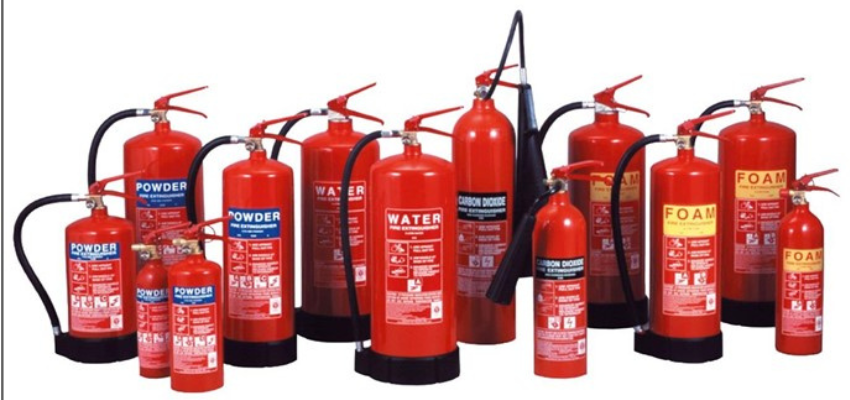 Professional installation of ISI certified portable fire extinguishers including ABC powder, CO2, foam and clean agent types for different fire classes